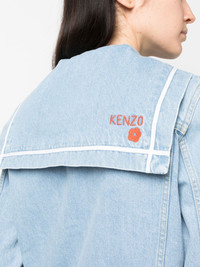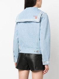 Sailor logo-embroidered denim jacket Named after the maritime influences that embody Kenzo's SS23 collection, this 'Sailor' denim jacket is defined by its sailor collar and striped trims which further nod to the nautical theme. Imported Composition Cotton 100% SIZE & FIT Model measurements Height 5 ft 10 in(1.78 m) Bust/Chest 31.49 in(80 cm) Hips 36.22 in(92 cm) Waist 25.59 in(65 cm) Measurement CHEST 38.97 in(99 cm) SLEEVE LENGTH 24.01 in(61 cm) LENGTH 23.62 in(60 cm) FittingInformation This piece fits true to size. We recommend you get your regular size Cut for a loose fit Made with a mid-weight non-stretch fabric Washing instructions Machine Wash