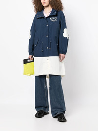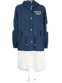 Sailor long windbreaker jacket Nautical influences define this Kenzo windbreaker, as the brand evokes the Japanese interpretation of Parisian haute couture in the 80s, and its fascination with sailor suits. The oversized design boasts the brand's logo at the front, and a seascape scene on the back to enhance the piece's theme. Imported Composition Nylon 100% SIZE & FIT Model measurements Height 5 ft 10 in(1.78 m) Bust/Chest 33.46 in(85 cm) Hips 35.43 in(90 cm) Waist 24.4 in(62 cm) FittingInformation This piece fits true to size. We recommend you get your regular size Cut for a loose fit Made with a mid-weight non-stretch fabric Washing instructions Hand Wash
