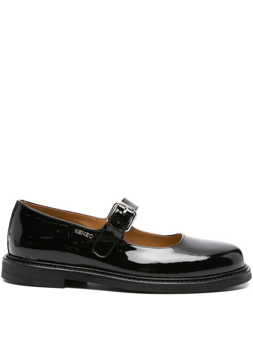 Smile buckle patent loafers Highlights - Black - Patent leather - Buckle fastening - Round toe - Flat sole - Mary-jane strap Imported Composition Sole: Rubber 100% Outer: Patent Calf Leather 100% Lining: Calf Leather 100%