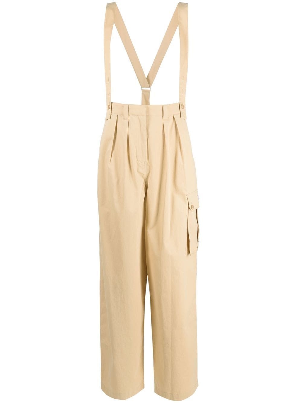 straight-leg braces cargo trousers Drawing inspiration from classic utilitarian styles, these Kenzo trousers have a straight-leg cargo silhouette that features button-on braces. The cotton-made pair is finished with pleats at the front for an elegant touch. Imported Composition Outer: Cotton 100% Lining: Cotton 100% SIZE & FIT Model measurements Height 5 ft 10 in(1.79 m) Bust/Chest 31.49 in(80 cm) Hips 35.03 in(89 cm) Waist 23.62 in(60 cm) FittingInformation This piece fits true to size. We recommend you get your regular size Designed to be fitted at the waist and hips, loose over the leg Made with a mid-weight non-stretch fabric Washing instructions Hand Wash