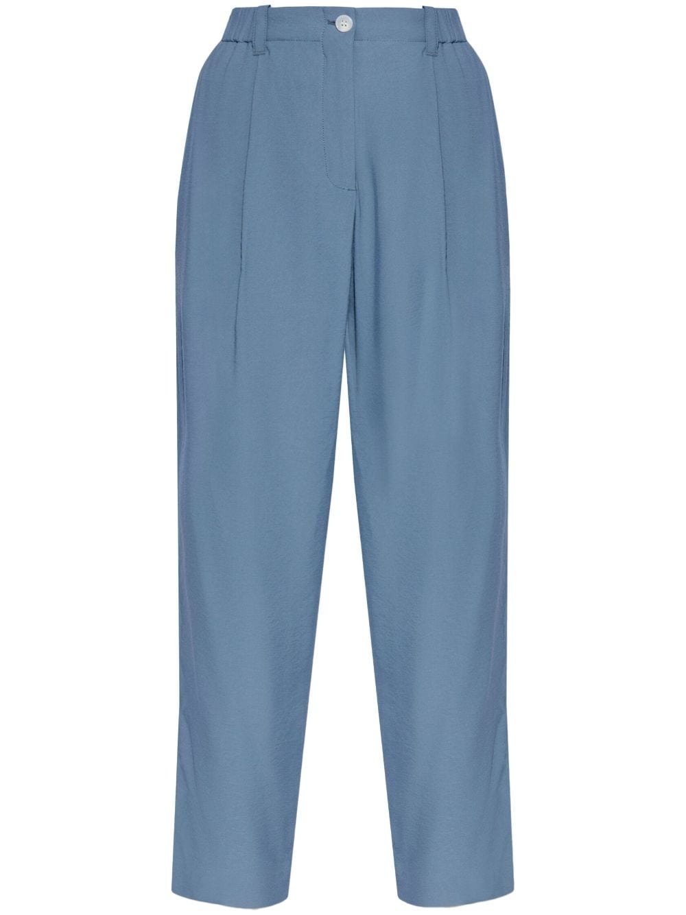 straight-leg trousers Highlights - Steel blue - Applique logo - Pleat detailing - High-rise - Rear elasticated waistband - Belt loops - Concealed fly and button fastening - Two side slit pockets - Rear welt pocket - Straight leg Imported Composition Viscose 89%, Polyamide 11% SIZE & FIT FittingInformation Designed for a straight-leg fit, these trousers allow for a close fit at the waist and an unrestricted, comfortable fit over the leg The elasticated waist allows for a comfortable fit Made from a midweight non-stretch fabric This piece fits true to size – take your usual size