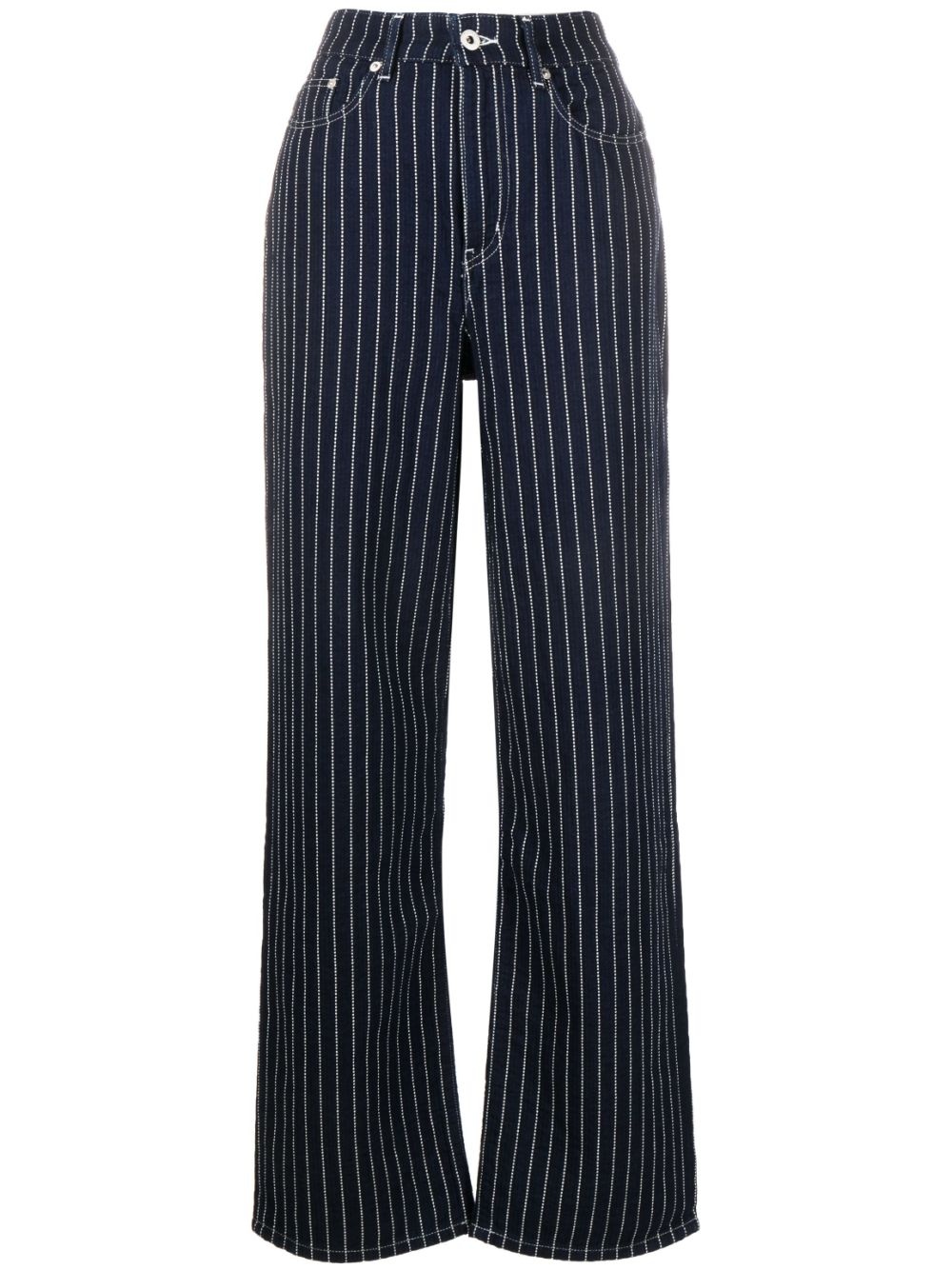stripe-print straight-leg trousers Highlights - Navy blue - Cotton - Stripe print - High waist - Front button and zip fastening - Straight leg - Classic five pockets Imported Composition Cotton 100% SIZE & FIT Model measurements Height 5 ft 11 in(1.8 m) Bust/Chest 31.88 in(81 cm) Hips 35.03 in(89 cm) Waist 24.01 in(61 cm)