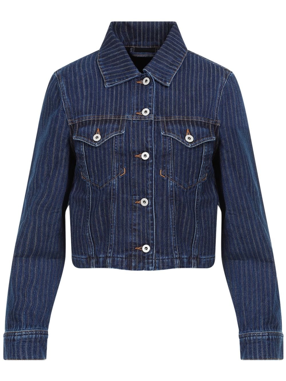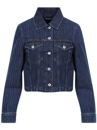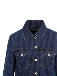 striped denim jacket Highlights - Blue - Cotton - Denim - Dark wash - Vertical stripe pattern - Classic collar - Front button fastening - Two chest flap pockets - Long sleeves - Buttoned cuffs - Straight hem Imported Composition Cotton 100%