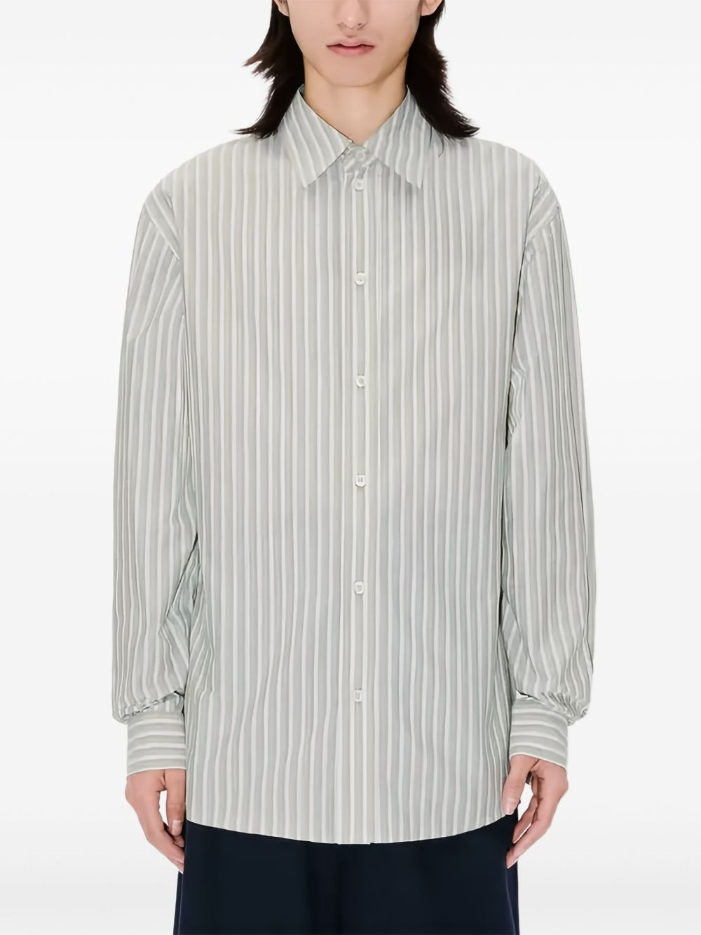 striped shirt Highlights - Pale khaki green - Striped - Button fastening - Long sleeves - Buttoned cuffs - Classic collar Imported Composition Cotton 100% Washing instructions Read Manufacturer Guidelines