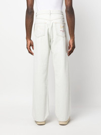 Suisen straight-leg jeans Boasting a classic straight-leg silhouette, these jeans from Kenzo arrive in a bleached light-blue wash while the colourful addition of the logo embroidery to the rear patch pocket hints towards the brand’s lively aesthetic. Highlights - Light blue - Bleach wash - Cotton - Mid-rise - Belt loops - Concealed fly and button fastening - Classic five pockets - Embroidered logo to the rear - Straight leg Made in Italy Composition Cotton 100% SIZE & FIT Model measurements Height 6 ft 2 in(1.88 m) Bust/Chest 34.64 in(88 cm) Hips 33.85 in(86 cm) Waist 27.55 in(70 cm) Measurement FRONT RISE 14.37 in(36.5 cm) INSIDE LEG 33.07 in(84 cm) HIPS 48.81 in(124 cm) FittingInformation Designed with a straight leg, these jeans allow for an unrestricted and comfortable fit over the leg Sturdy and hard-wearing, this denim piece offers no stretch This piece fits true to size – take your usual size Washing instructions Machine Wash