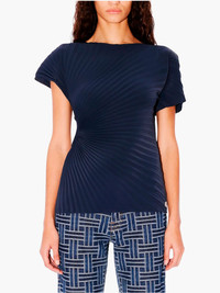 sunray-pleated T-shirt Highlights - Midnight blue - Fully pleated - Boat neck - Short sleeves - Cut-out detailing - Sun motif - Applique logo - Straight hem Imported Composition Polyester 100%