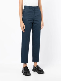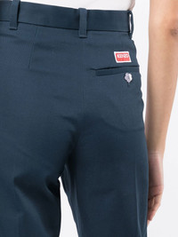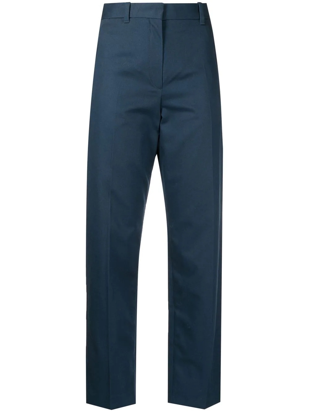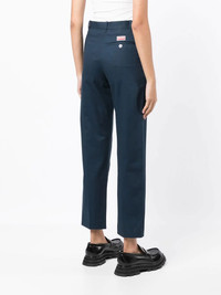 tailored straight-leg trousers navy blue cotton logo patch to the rear tailored cut high waist front button and zip fastening slip pockets to the sides straight leg ankle-length Imported Composition Cotton 100% SIZE & FIT Model measurements Height 5 ft 10 in(1.77 m) Bust/Chest 31.49 in(80 cm) Hips 35.43 in(90 cm) Waist 25.19 in(64 cm) FittingInformation This piece fits true to size. We recommend you get your regular size Designed to be fitted at the waist, loose over the leg Made with a mid-weight non-stretch fabric Washing instructions Machine Wash