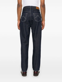 tapered-leg pinstriped jeans Highlights - Navy blue - Cotton - Washed denim - Pinstripe pattern - Logo patch to the rear - Belt loops - Concealed front button fastening - Tapered leg - Classic five pockets - Stitched pockets Imported Composition Cotton 100% SIZE & FIT Model measurements Height 6 ft 2 in(1.89 m) Bust/Chest 36.22 in(92 cm) Hips 35.82 in(91 cm) Waist 28.54 in(72.5 cm) FittingInformation Designed for a slim tapered leg, these jeans offer a close fit that sits just away from the leg with a closer fit towards the ankle Sturdy and hard-wearing, this denim piece offers no stretch This piece fits true to size – take your usual size