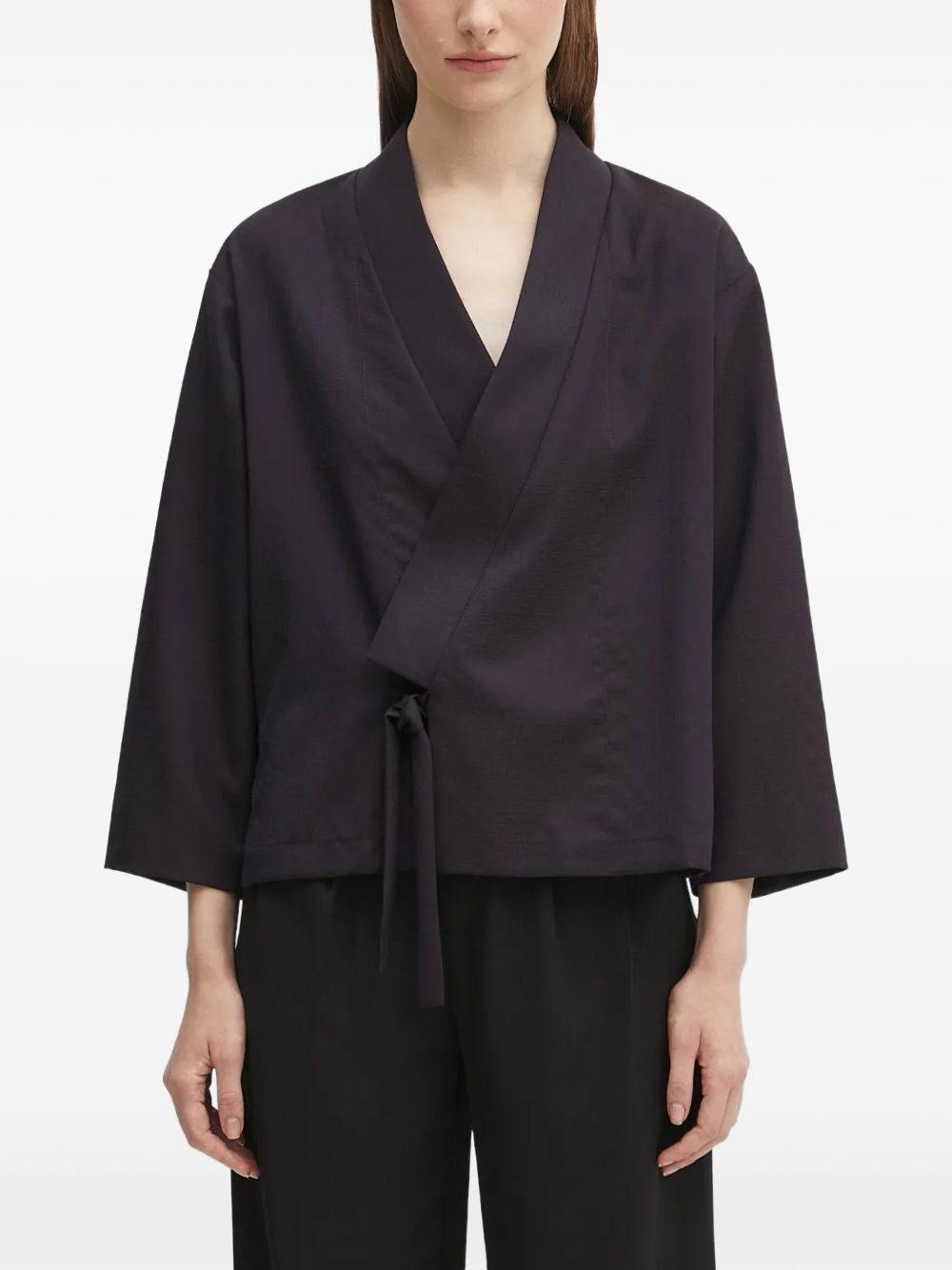 tie-detail jacket Highlights - Brown - V-neck - Tie fastening - Long sleeves - Wrap design - Front pocket Imported Composition Virgin Wool 100% Washing instructions Dry Clean Only