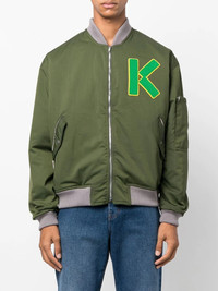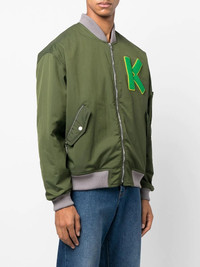 Varsity logo-patch bomber jacket khaki cotton twill weave logo patch at the chest logo patches to the rear stand-up collar front zip fastening two side flap pockets long sleeves elasticated hem padded lining Imported Composition Outer: Polyester 52%, Polyamide 48% Lining: Cotton 100%, Polyamide 100% SIZE & FIT Model measurements Height 6 ft 2 in(1.87 m) Bust/Chest 38.18 in(97 cm) Hips 36.61 in(93 cm) Waist 29.13 in(74 cm) Measurement CHEST 37.79 in(96 cm) SLEEVE LENGTH 24.4 in(62 cm) FittingInformation This piece fits true to size. We recommend you get your regular size Cut for a loose fit Made with a mid-weight non-stretch fabric