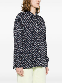 Verdy monogram-print shirt Inspired by the archives of late brand founder Kenzo Takada, this black Kenzo shirt is emblazoned with an original monogram print created in collaboration with Japanese graphic designer Verdy, evoking a logomania look. Highlights - Midnight blue/baby blue/light pink - Monogram print - Classic collar - Front button fastening - Long sleeves - Buttoned cuffs - Short side slits - High-low hem Imported Composition Viscose 100% SIZE & FIT Model measurements Height 5 ft 10 in(1.79 m) Bust/Chest 32.67 in(83 cm) Hips 34.25 in(87 cm) Waist 24.4 in(62 cm) FittingInformation Designed to be unstructured, offering a loose fit throughout Made from a midweight non-stretch fabric This piece fits true to size – take your usual size Washing instructions Dry Clean Only