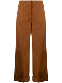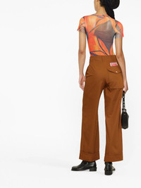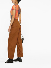 wide-leg cotton trousers Kenzo incroporated its signature jungle-inspired touch into these trousers. The wide-leg cotton construction opens up to expose a series of tiger motifs on the inner waistband. Imported Composition Outer: Cotton 100% Lining: Cotton 100% SIZE & FIT Model measurements Height 5 ft 10 in(1.78 m) Bust/Chest 30.31 in(77 cm) Hips 36.61 in(93 cm) Waist 24.8 in(63 cm) FittingInformation This piece fits true to size. We recommend you get your regular size Designed to be fitted at the waist and hips, loose over the leg Made with a mid-weight non-stretch fabric Washing instructions Machine Wash