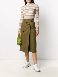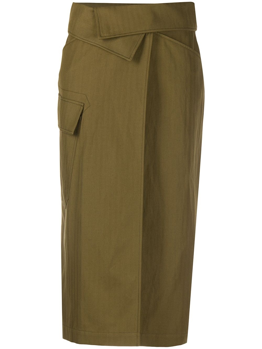 wrap waist skirt Khaki is the new black this season. So get ahead of the curve in this khaki wrap waist skirt from Kenzo. Make your friends green with envy as you take the lead. Highlights - Khaki - Cotton - Asymmetric waist - Wrap design - Front flap pocket Imported Composition Outer: Cotton 77%, Linen/Flax 23% Lining: Cotton 100% SIZE & FIT Model measurements Height 5 ft 11 in(1.8 m) Bust/Chest 33.07 in(84 cm) Hips 37.4 in(95 cm) Waist 25.19 in(64 cm) FittingInformation This piece fits true to size. We recommend you get your regular size Designed to be fitted at the waist and hips, loose over the leg Made with a mid-weight non-stretch fabric Washing instructions Machine Wash