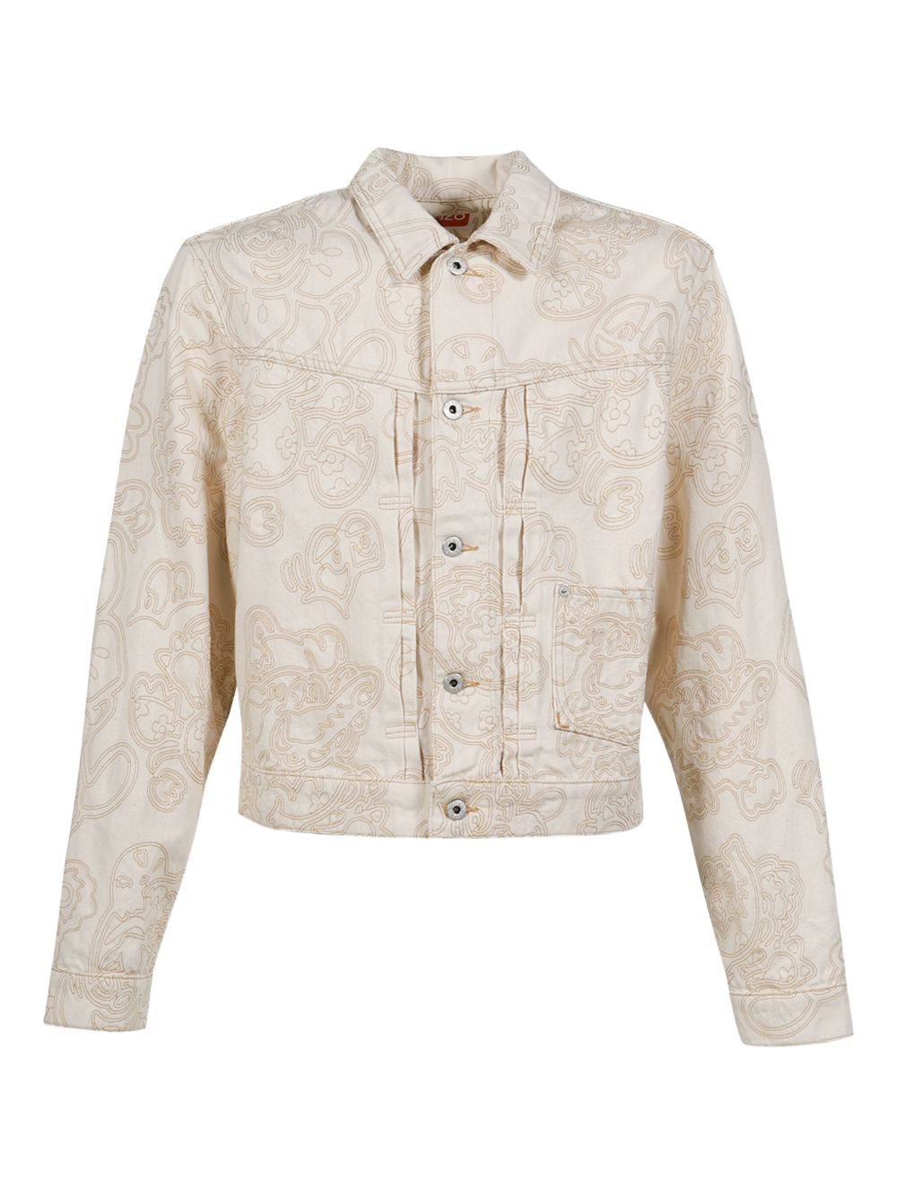x Verdy denim jacket Highlights - Cream - Embossed floral pattern - Button fastening - Chest pocket - Adjustable waist tab - Branded leather patch at back Imported Composition Cotton 100% Washing instructions Dry Clean Only