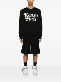 x Verdy flocked-logo sweatshirt Kenzo’s latest capsule is designed in collaboration with Verdy – a Japanese graphic designer renowned for taking inspiration from the world of skateboarding, hip-hop and manga. From the lineup, this black cotton sweatshirt is adorned with a contrasting flocked logo reimagined in the artist’s favourite typeface. Highlights - Black, white - Cotton - Jersey texture - Ribbed crew neck - Flocked 'kenzo by verdy' paris logo - Drop shoulder - Long sleeves - Ribbed cuffs and hem - French terry lining Imported Composition Cotton 100% SIZE & FIT Model measurements Height 6 ft 2 in(1.87 m) Bust/Chest 38.18 in(97 cm) Hips 36.61 in(93 cm) Waist 29.13 in(74 cm) Measurement CHEST 45 in(114.3 cm) LENGTH 24.01 in(61 cm) WAIST 42 in(106.7 cm) SLEEVE LENGTH 22.99 in(58.4 cm) FittingInformation Designed to be unstructured, offering a loose fit throughout Made from a midweight non-stretch fabric, this piece offers minimal elasticity when worn