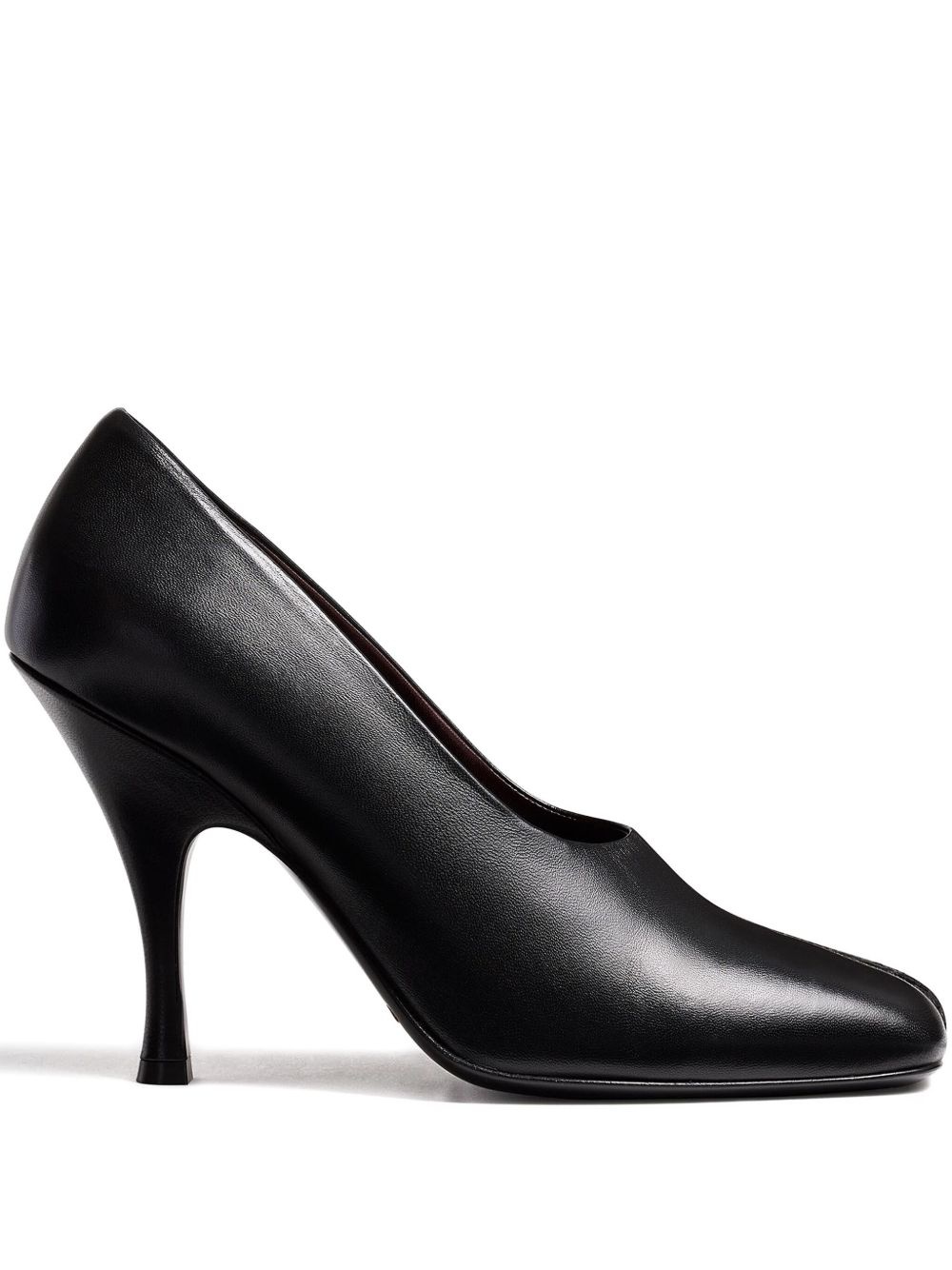 100mm Eva pumps Highlights - Black - Tapered heel - Smooth finish - Shallow cut design Made in Italy Composition Outer: Goat Skin 100% Sole: Calf Leather 100% Lining: Calf Leather 100% SIZE & FIT Measurement HEEL 3.93 in(10 cm)