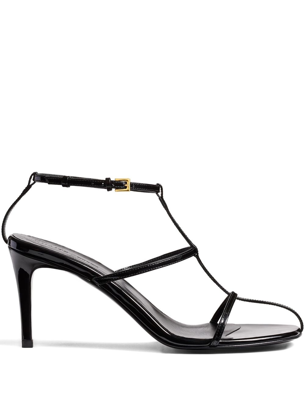 75mm Cage sandals Highlights - Black - Sleek straps - Adjustable ankle buckle - 75mm stiletto heel - Square toe - Slim silhouette Made in Italy Composition Sole: Calf Leather 100% Lining: Calf Leather 100% Outer: Patent Calf Leather 100% SIZE & FIT Measurement HEEL 2.95 in(7.5 cm)