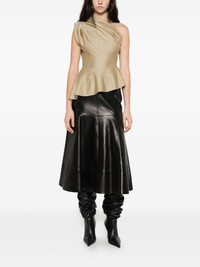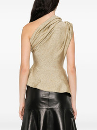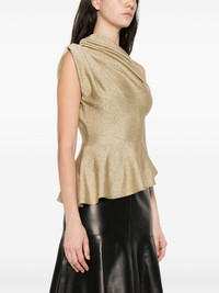 Aimee asymmetric one-shoulder draped Lurex peplum top Gold
