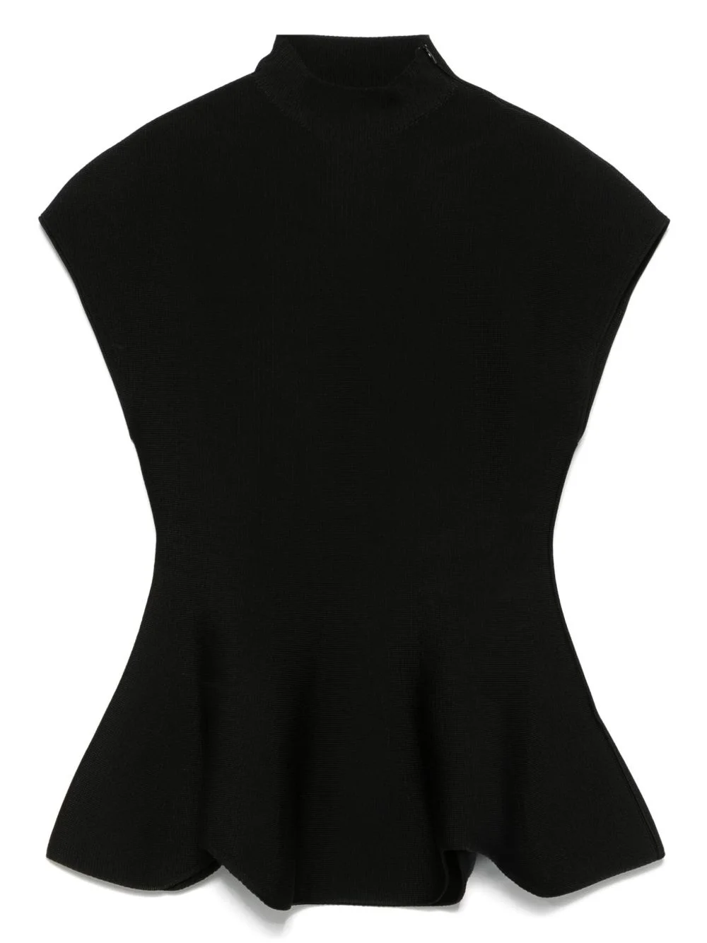 Andra top Highlights - Black - Shoulder zip fastening - Mock neck - Cap sleeves - Peplum hem Made in Italy Composition Viscose 85%, Polyamide 13%, Elastane 2% SIZE & FIT Measurement LENGTH 24.4 in(62 cm) WAIST 23.62 in(60 cm) Washing instructions Dry Clean Only
