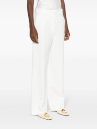 Bacall straight trousers Highlights - Chalk white - Twill weave - Pressed crease - Dart detailing - Mid-rise - Straight leg - Two diagonal pockets to the sides - Two rear jetted pockets - Belt loops - Concealed front button, hook and zip fastening - Unlined Made in United States Composition Outer: Viscose 75%, Polyamide 25% Lining: Cupro 100% SIZE & FIT Model measurements Height 5 ft 10 in(1.78 m) Bust/Chest 31.49 in(80 cm) Hips 37 in(94 cm) Waist 23.62 in(60 cm) FittingInformation Designed with a wide-leg cut, these trousers allow for a close fit at the waist and offer a loose and roomy fit over the leg Made from a midweight non-stretch fabric This piece fits true to size – take your usual size