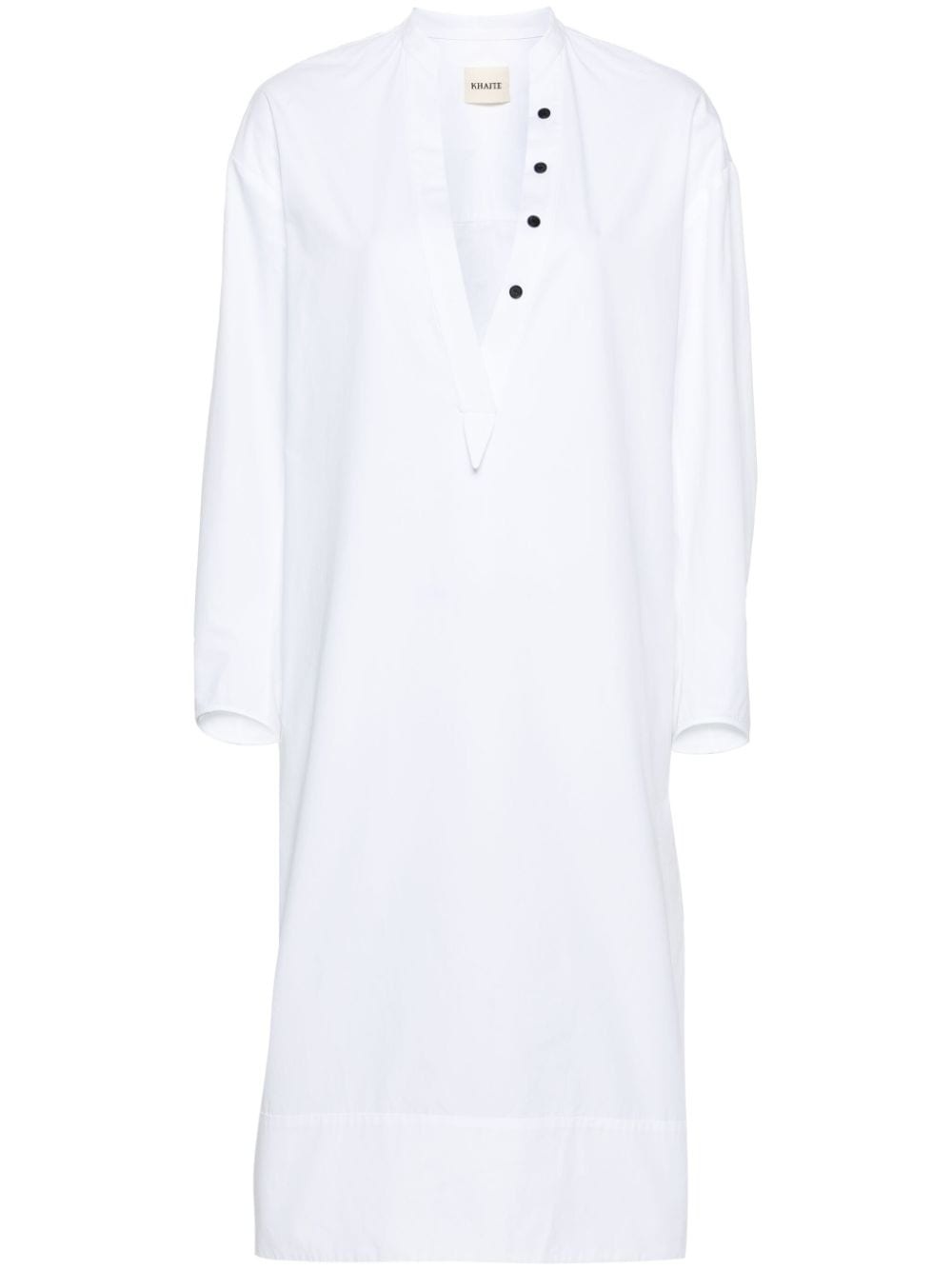 Brom shift midi dress Highlights - White - Cotton - Shift style - Decorative button detailing - Plunging v-neck - Drop shoulder - Long sleeves - Side slits - Straight hem - Mid-length Made in Italy Composition Cotton 100% SIZE & FIT Model measurements Height 5 ft 11 in(1.8 m) Bust/Chest 33.07 in(84 cm) Hips 37.4 in(95 cm) Waist 25.19 in(64 cm) Measurement SLEEVE LENGTH 19.68 in(50 cm) HIPS 48.81 in(124 cm) LENGTH 42.51 in(108 cm) WAIST 46.45 in(118 cm) FittingInformation Designed to be unstructured, offering a loose fit throughout The vented hem offers movement at the rear Made from a midweight non-stretch fabric This piece fits true to size – take your usual size Washing instructions Hand Wash