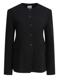 button-front tailored jacket Highlights - Black - Round neck - Button fastening - Long sleeves - Flap pockets - Tailored fit Made in United States Composition Viscose 78%, Virgin Wool 21%, Elastane 1% Washing instructions Read Manufacturer Guidelines