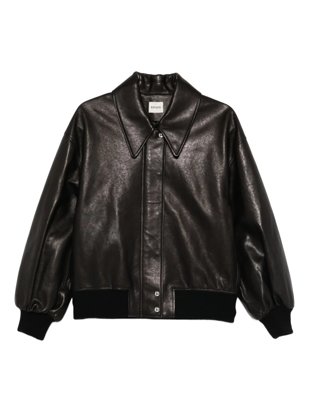 collared leather jacket Highlights - Black - Long sleeves - Pointed collar - Press-stud and zip fastening - Ribbed trims Made in Italy Composition Lambskin 100% SIZE & FIT Model measurements Height 5 ft 9 in(1.75 m) Bust/Chest 32.28 in(82 cm) Hips 35.03 in(89 cm) Waist 23.62 in(60 cm) Washing instructions Specialist Cleaning