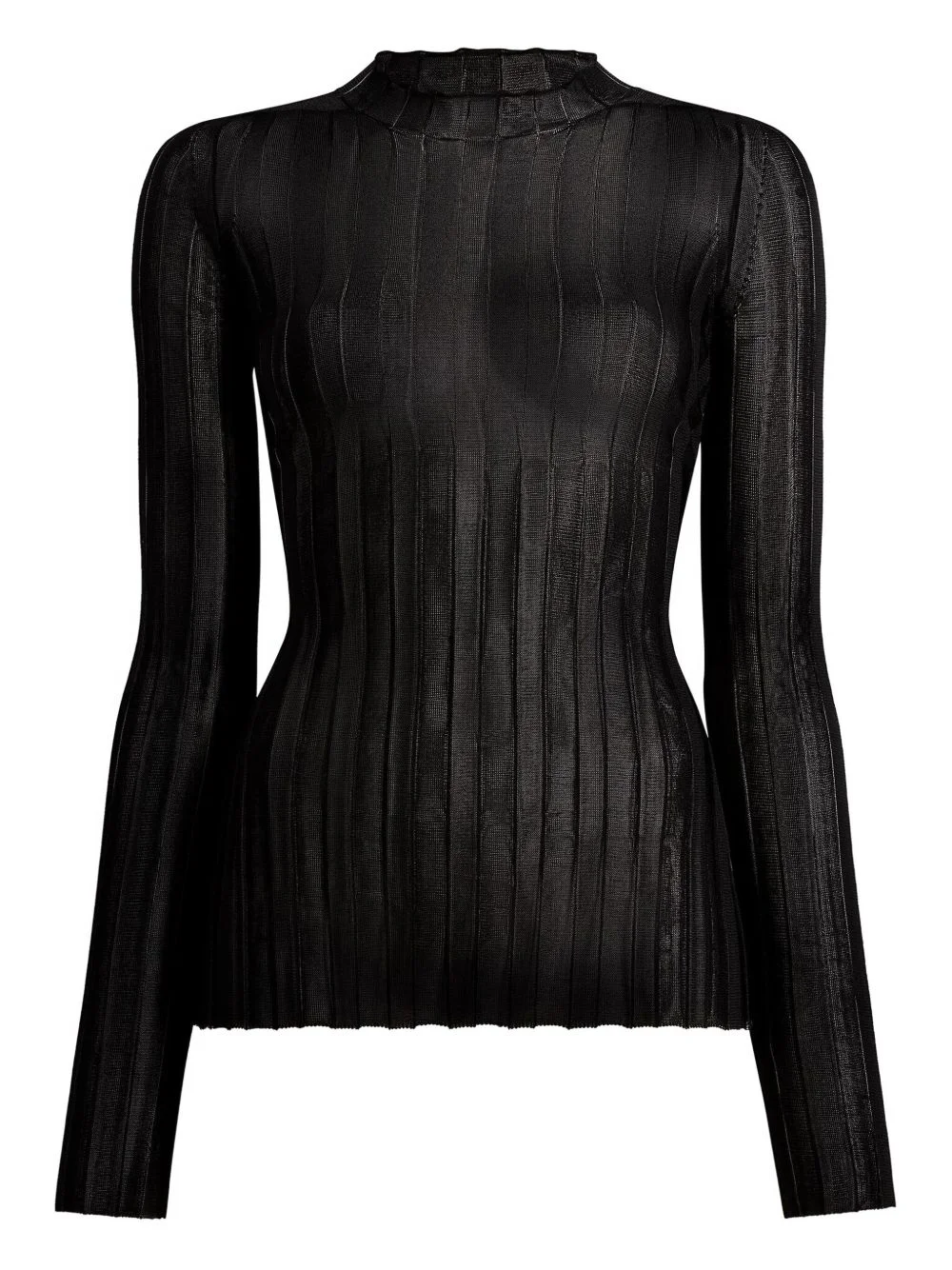 Cosette ruffled ribbed top Highlights - Black - Ribbed knit - Ruffled neck - Long sleeves Made in Italy Composition Viscose 99%, Polyamide 1% Washing instructions Dry Clean Only
