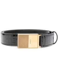 croc-embossed belt Highlights - Black - Calf leather - Embossed crocodile effect - Patent finish - Slide-buckle fastening - Logo-engraved buckle - Straight tips - Adjustable fit - This piece comes complete with a protective dust bag. Made in Italy Composition Outer: Calf Leather 100% SIZE & FIT Measurement TOTAL LENGTH 37.79 in(96 cm) WIDTH 1.57 in(4 cm)