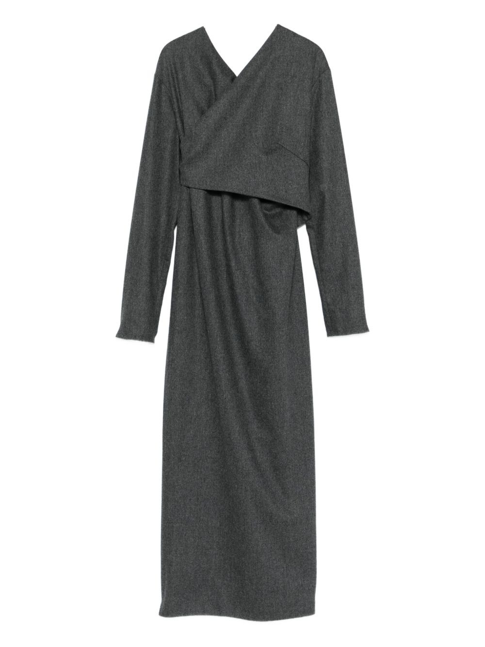 Aubrey Wrap-Front Wool Midi Dress grey