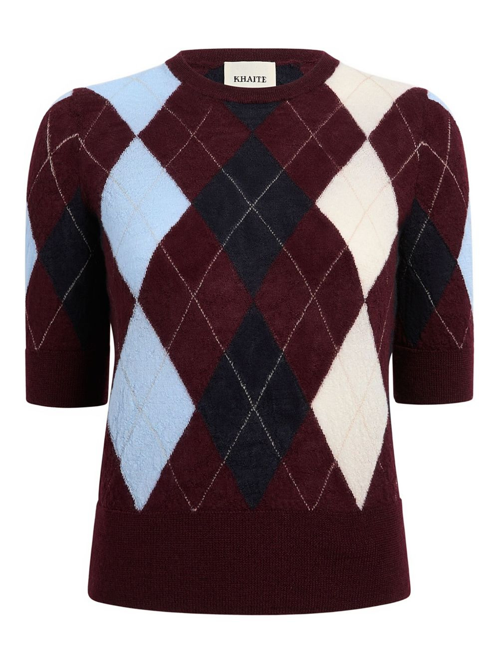 diamond-pattern short-sleeve top Highlights - Dark red - Argyle pattern - Round neck - Short sleeves Imported Composition Cashmere 70%, Mohair 30% Washing instructions Read Manufacturer Guidelines