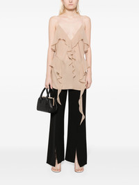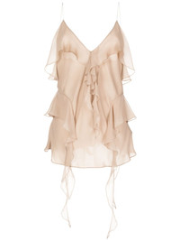 draped silk top Highlights - Sand beige - Silk - Draped detailing - Ruffled detailing - Spaghetti straps - V-neck - Sleeveless - Open back - Rear button fastening - Straight hem Made in Italy Composition Silk 100% SIZE & FIT Model measurements Height 5 ft 9 in(1.76 m) Bust/Chest 31.1 in(79 cm) Hips 35.03 in(89 cm) Waist 24.4 in(62 cm) Measurement LENGTH 29.52 in(75 cm) WAIST 30.7 in(78 cm) FittingInformation Designed for a slim fit that sits just away from the body offering a close yet comfortable fit Made from a lightweight non-stretch fabric This piece fits true to size – take your usual size Washing instructions Dry Clean Only