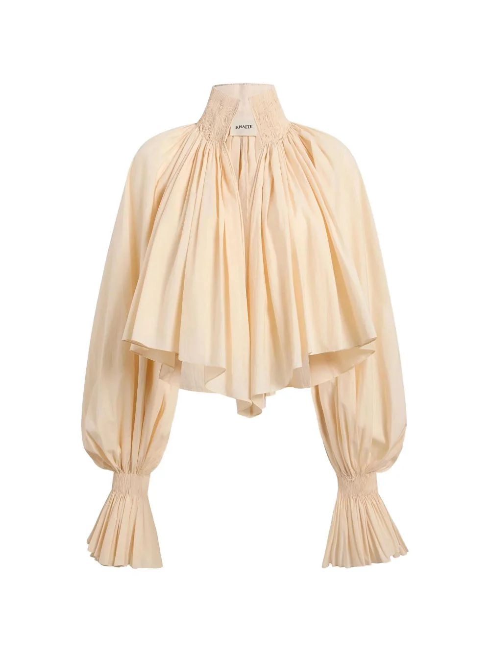 Durer blouse Highlights - Beige - High neck - Pleated detail - Gathered cuffs Made in United States Composition Body: Cotton 83%, Polyester 17%