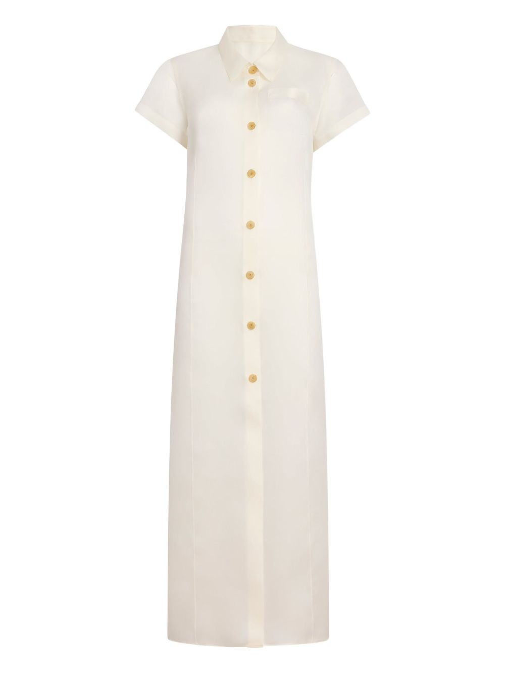 Effy buttoned pocket dress Highlights - Chalk - Button fastening - Chest pocket - Short sleeves - Collared - Straight hem Made in Italy Composition Silk Organza 100%