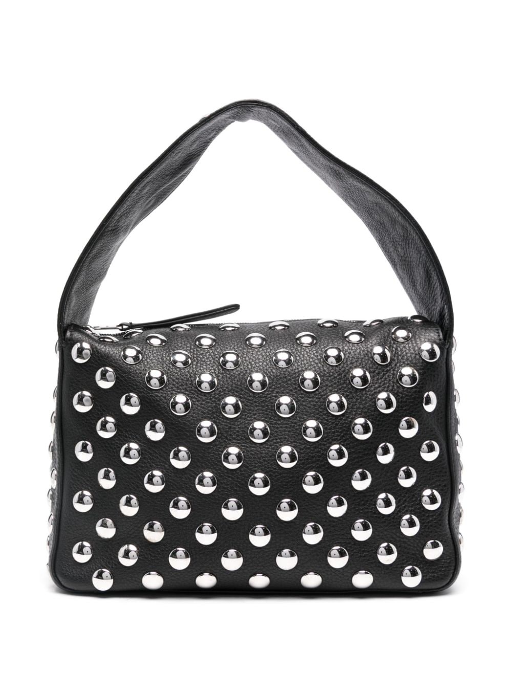 Elena studded shoulder bag Highlights - Black - Calf leather - Pebbled texture - Silver-tone stud embellishment - Single flat top handle - Main compartment - Internal patch pocket - Debossed internal logo - Leather lining - Top zip fastening - This piece comes complete with a protective dust bag. Made in Italy Composition Outer: Calf Leather 100% SIZE & FIT Measurement DEPTH 3.54 in(9 cm) HANDLE 6.29 in(16 cm) HEIGHT 7.08 in(18 cm) WIDTH 10.62 in(27 cm)