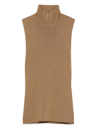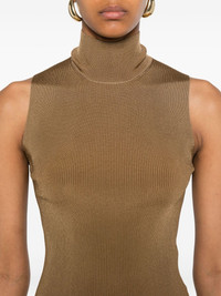 high neck top Highlights - Brown - High neck - Sleeveless - Straight hem Made in Italy Composition Viscose 80%, Polyamide 18%, Spandex/Elastane 2% SIZE & FIT Model measurements Height 5 ft 10 in(1.77 m) Bust/Chest 33.07 in(84 cm) Hips 37 in(94 cm) Waist 24.8 in(63 cm) FittingInformation Designed for a close fit throughout Made from a midweight stretch fabric, this piece offers elasticity and flexibility when worn Washing instructions Dry Clean Only