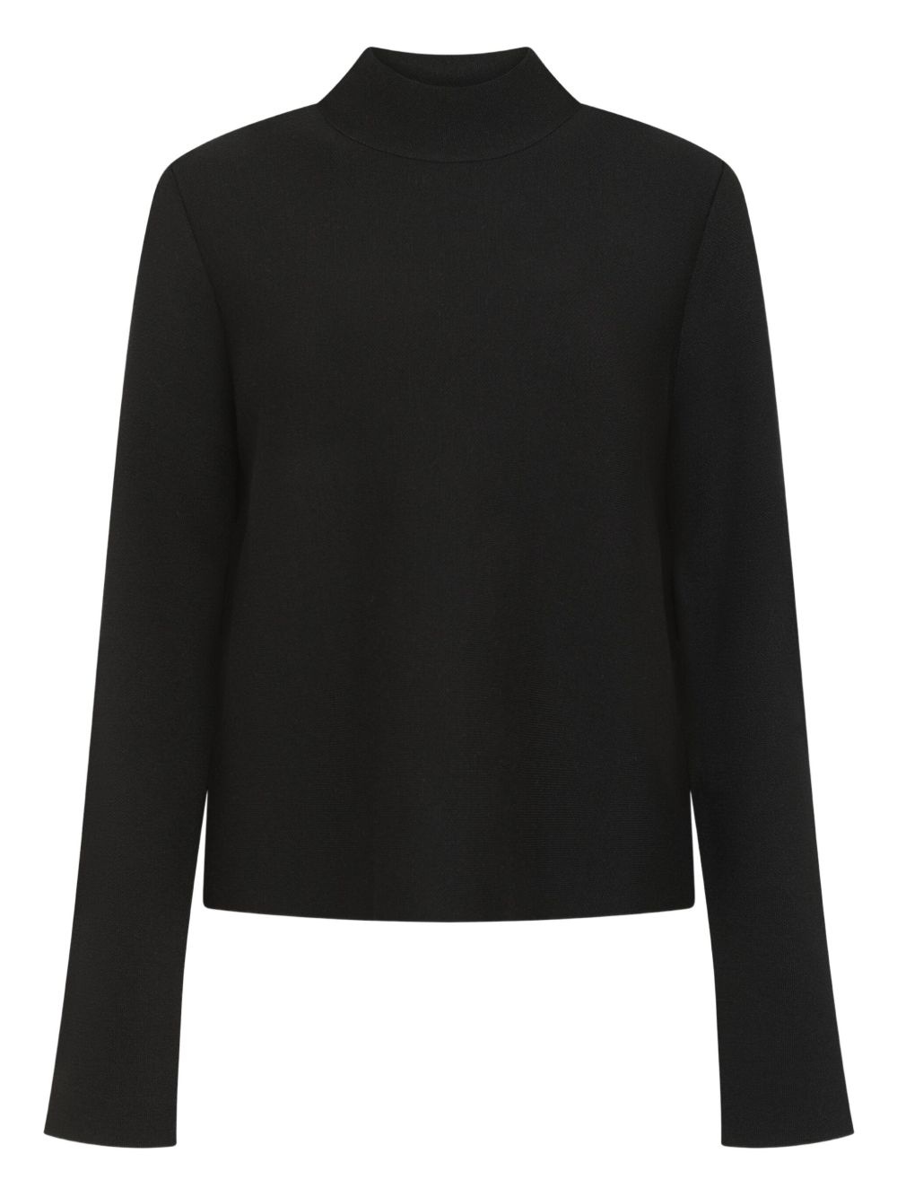 high-neck wool sweater Highlights - Black - High neck - Long sleeves - Wide cuffs - Boxy shape - Wool fabric Made in Italy Composition Wool 96%, Polyamide 4% Washing instructions Read Manufacturer Guidelines