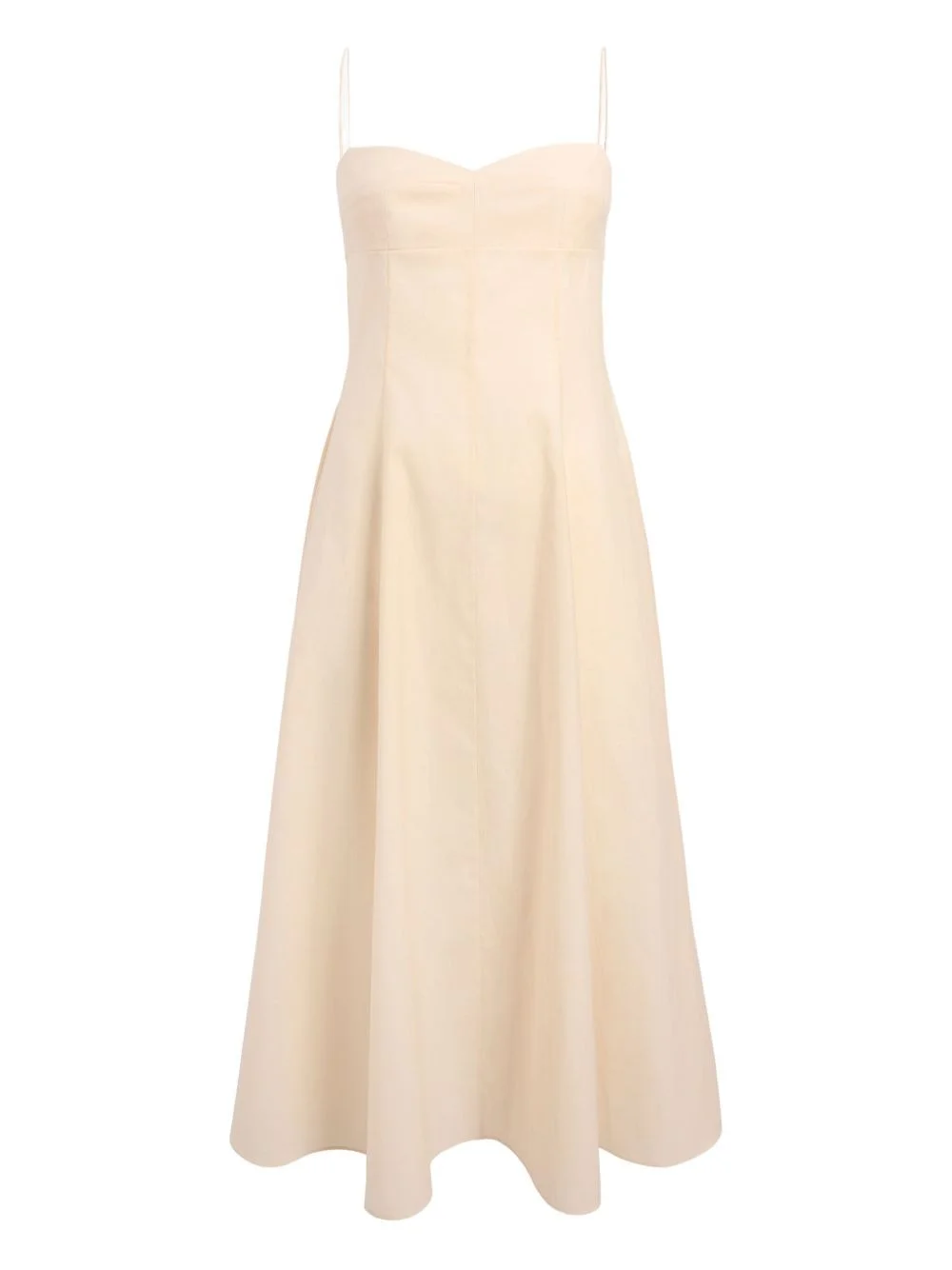 Isabella spaghetti-strap A-line midi dress Highlights - Bone - A-line shape - Spaghetti straps - Sweetheart neckline - Concealed zip back fastening - Natural cotton Made in United States Composition Cotton 100% Washing instructions Read Manufacturer Guidelines
