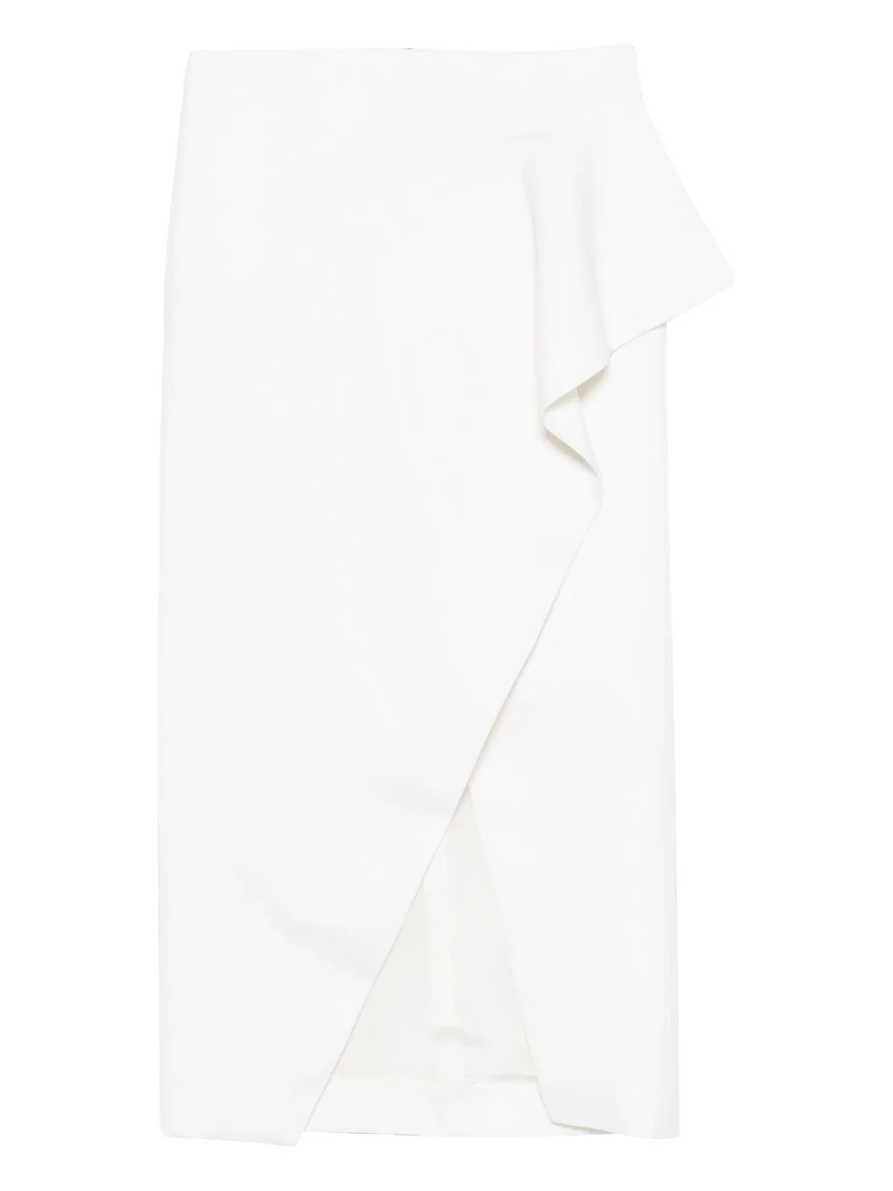 Jaia ruffled split midi skirt Highlights - Beige - Ruffled detail - Split detail - Concealed zip fastening Made in Italy Composition Lining: Silk 100% Outer: Virgin Wool 100% SIZE & FIT Model measurements Height 5 ft 9 in(1.76 m) Bust/Chest 31.88 in(81 cm) Hips 35.43 in(90 cm) Waist 24.8 in(63 cm) Washing instructions Dry Clean Only