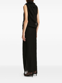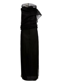 Jeanty layered draped dress Highlights - Black - Asymmetric neckline - Ruched bodice - Sheer overlay - Back vent - Side slit Made in United States Composition Silk 100% Washing instructions Read Manufacturer Guidelines