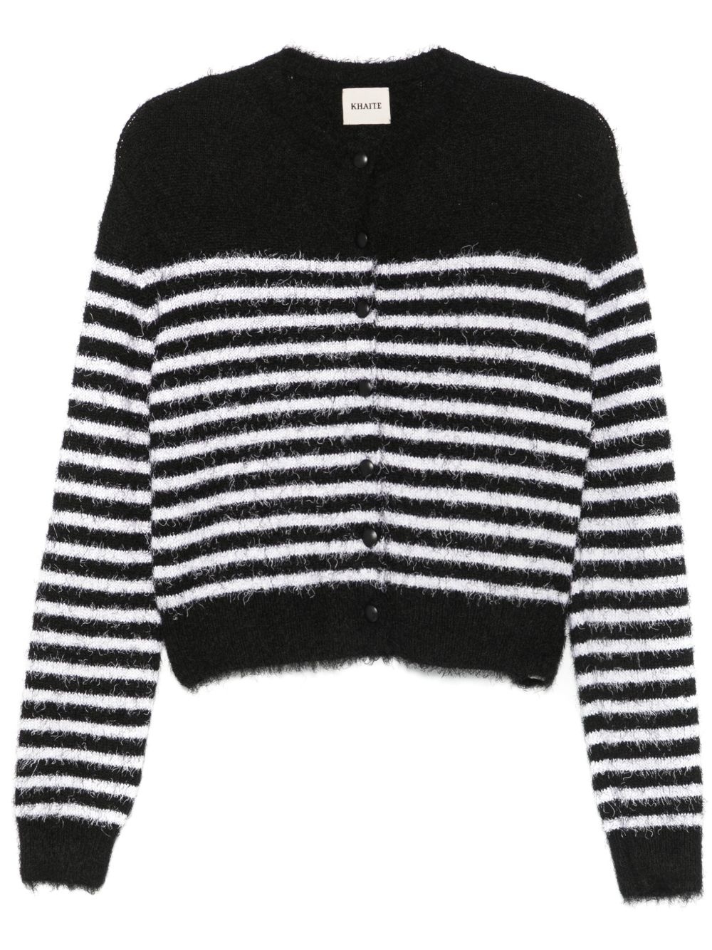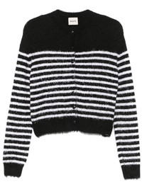 Jules cardigan Highlights - Black - Front button fastening - Horizontal stripe pattern - Crew neck - Long sleeves Made in Italy Composition Silk 58%, Cashmere 42% SIZE & FIT Model measurements Height 5 ft 9 in(1.75 m) Bust/Chest 34.64 in(88 cm) Hips 36.61 in(93 cm) Waist 26.37 in(67 cm) Measurement SLEEVE LENGTH 23.42 in(59.5 cm) LENGTH 19.68 in(50 cm) WAIST 35.43 in(90 cm) FittingInformation Designed for a relaxed fit, this piece allows for comfort and movement when worn Made with a midweight knit, this piece offers some stretch