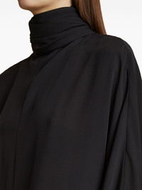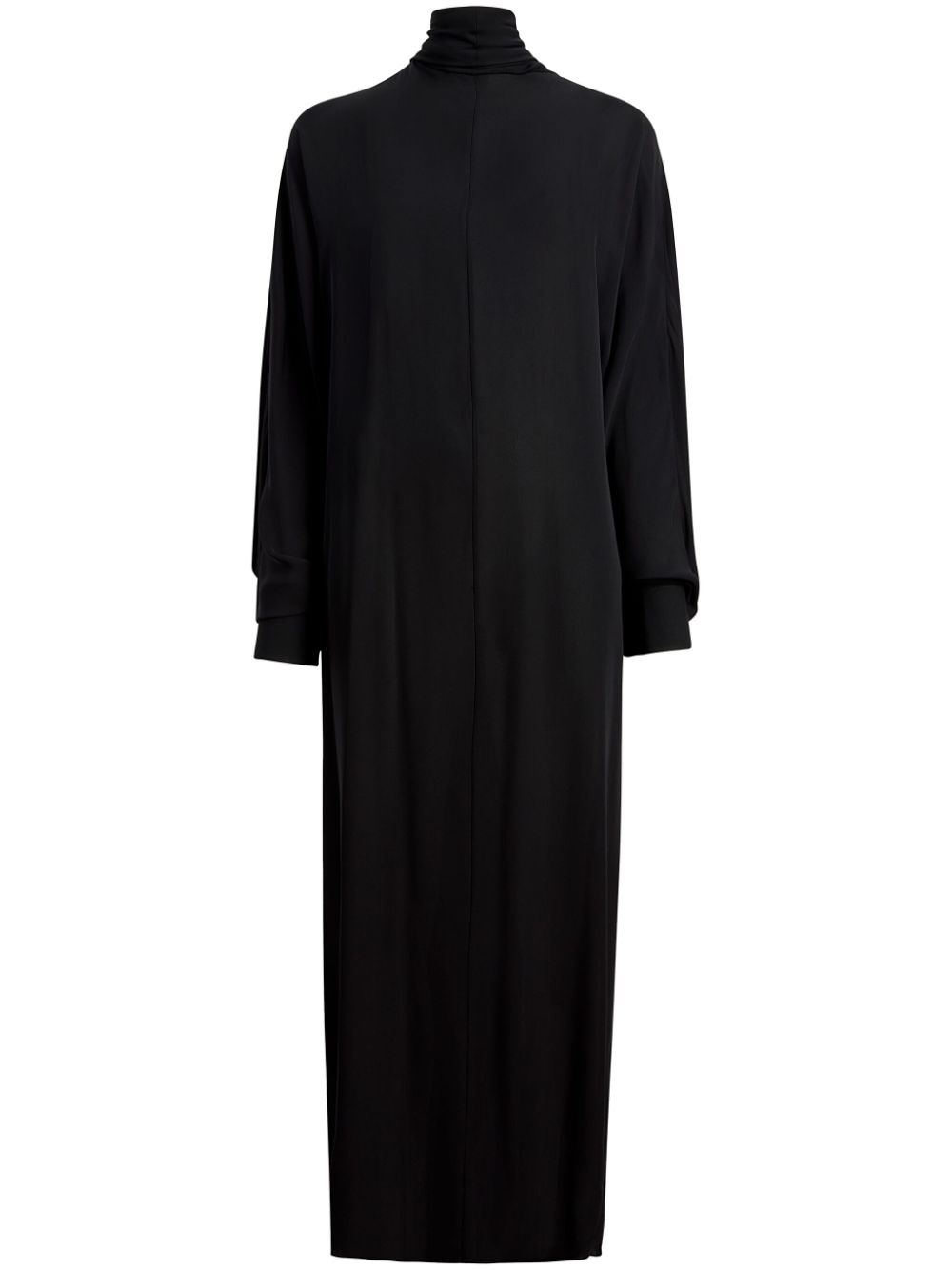 Laxi madi dress Highlights - Black - Silk - Semi-sheer construction - Scarf detailing - High neck - Dolman sleeves with buttoned cuffs - Shift style - V-back - Straight hem - Ankle-length Made in United States Composition Silk 100% SIZE & FIT Measurement SLEEVE LENGTH 31.49 in(80 cm) HIPS 53.54 in(136 cm) LENGTH 52.36 in(133 cm) WAIST 53.54 in(136 cm) Washing instructions Dry Clean Only