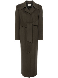 Lea coat Highlights - Moss green - Wool - Belted waist - Notched lapels - Off-shoulder - Long sleeves - Two side welt pockets - Central rear vent - Straight hem Made in United States Composition Lining: Cupro 100% Outer: Wool 100% SIZE & FIT Model measurements Height 5 ft 10 in(1.77 m) Bust/Chest 32.28 in(82 cm) Hips 35.03 in(89 cm) Waist 25.19 in(64 cm) FittingInformation Designed to be unstructured, offering a loose fit throughout The tie fastening gives an adaptable and personalised fit Made from a midweight non-stretch fabric Washing instructions Dry Clean Only