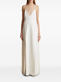 Nonya open-back maxi dress Highlights - Chalk white - Crepe satin - Plunging v-neck - Spaghetti straps - Open back - Slip silhouette - Two thigh-high side slits - Straight hem - Floor-length Made in Italy Composition Acetate 83%, Viscose 17% SIZE & FIT Measurement HIPS 38.58 in(98 cm) LENGTH 60.23 in(153 cm) WAIST 29.13 in(74 cm)