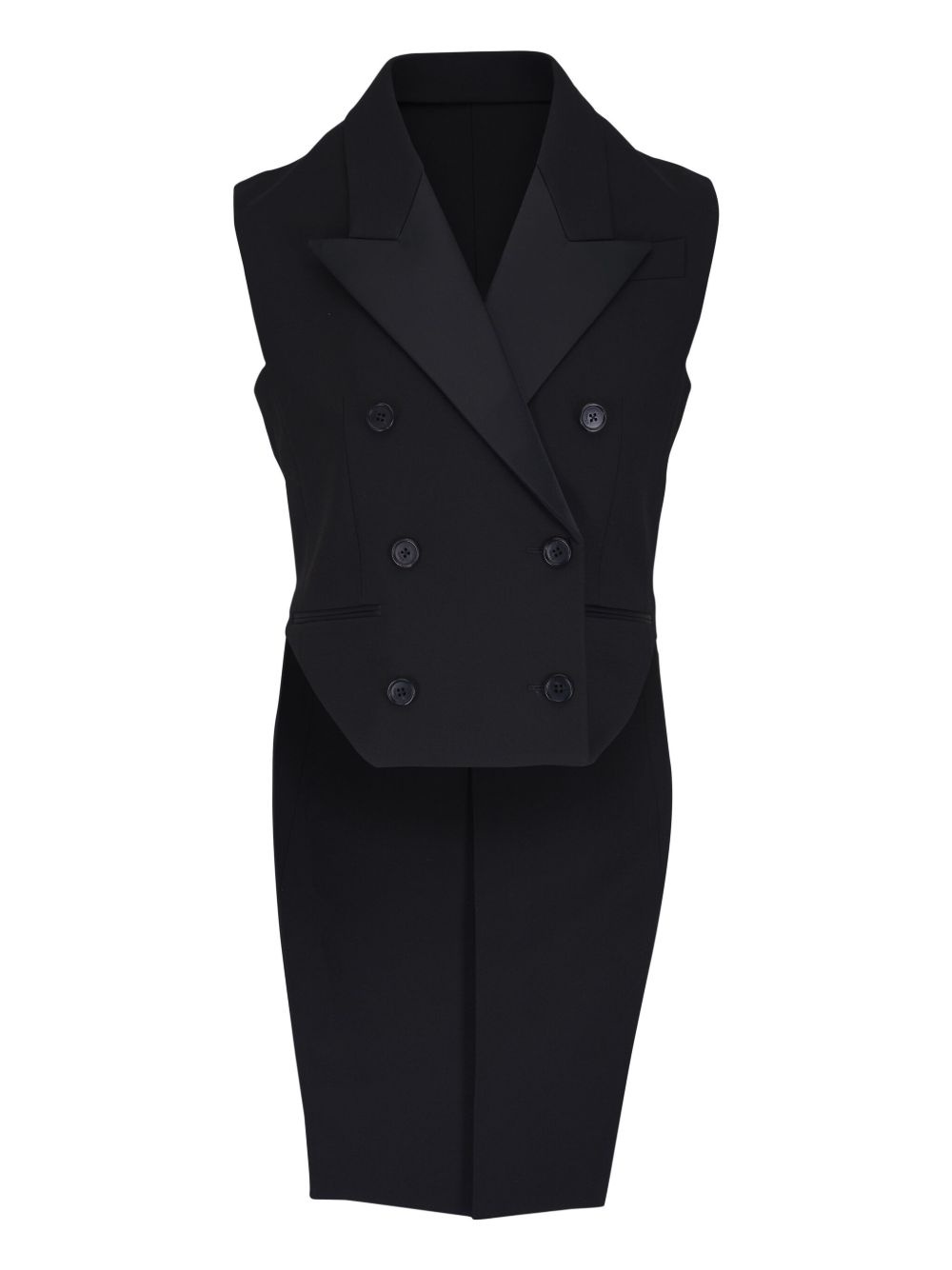 Orville double-breasted waistcoat Highlights - Black - Double-breasted design - Notched lapels - Belted waist - Rear vent - Tailored structured silhouette Made in Italy Composition Viscose 78%, Virgin Wool 21%, Elastane 1%