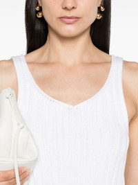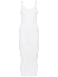Ottilie ribbed-knit dress white cotton blend knitted construction ribbed knit V-neck sleeveless open back unlined straight hem mid-length Made in Italy Composition Cotton 50%, Polyamide 28%, Silk 22% Washing instructions Dry Clean Only