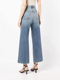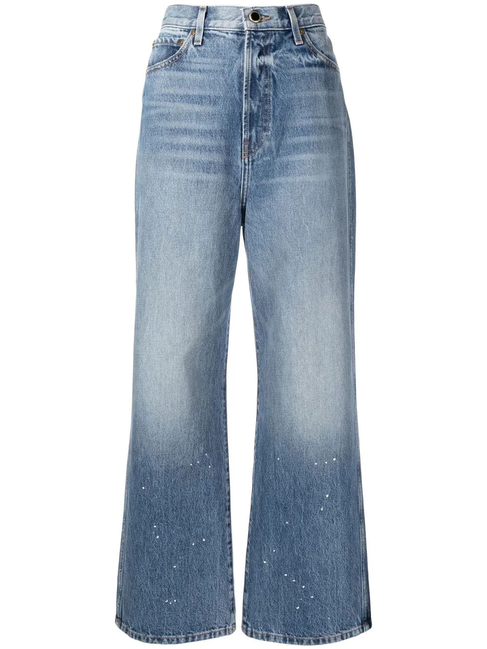 paint-splatter wide-leg jeans blue cotton paint splatter detail wide leg cropped front button and zip fastening Made in United States Composition Cotton 100% SIZE & FIT Model measurements Height 5 ft 11 in(1.8 m) Bust/Chest 28.34 in(72 cm) Hips 35.43 in(90 cm) Waist 23.62 in(60 cm) FittingInformation This piece fits true to size. We recommend you get your regular size Designed to be fitted at the waist, loose over the leg Made with a mid-weight non-stretch fabric Washing instructions Hand Wash