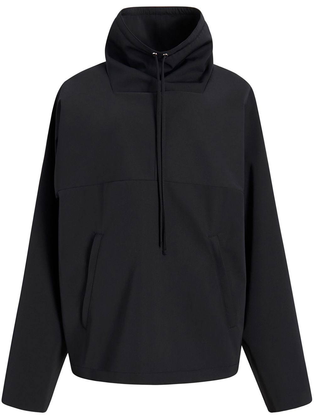 Paulson jacket black cotton blend stand-up collar with drawstring fastening short front zip fastening long sleeves two side zip-fastening pockets straight hem Made in United States Composition Polyester 69%, Cotton 31%