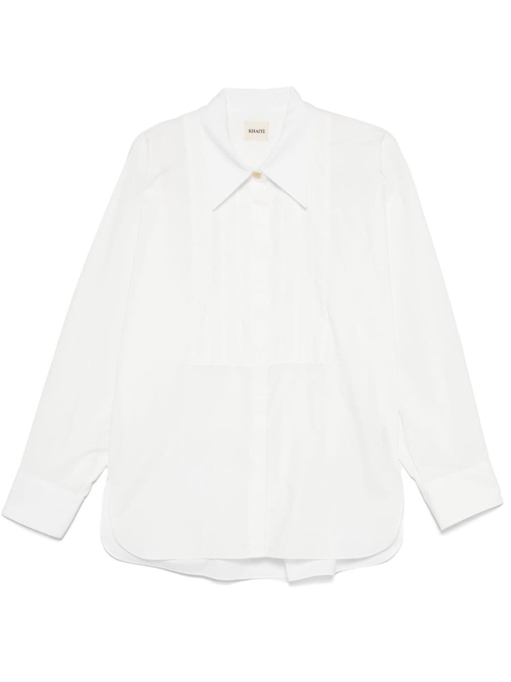 pintuck-detailed shirt Highlights - White - Cotton - Poplin texture - Front button fastening - Pointed flat collar - Pintuck detailing - Long sleeves - Buttoned cuffs - Box-pleat detail - Short side slits - Curved hem Made in United States Composition Cotton 100% SIZE & FIT Model measurements Height 5 ft 10 in(1.77 m) Bust/Chest 33.07 in(84 cm) Hips 37 in(94 cm) Waist 24.8 in(63 cm) FittingInformation Designed for an oversized fit, offering additional room throughout Made from a midweight non-stretch fabric