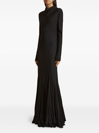 pleated open-back silk dress Highlights - Black - High neck - Long sleeves - Open back - Pleated skirt - Fitted bodice Made in Italy Composition Silk 100%